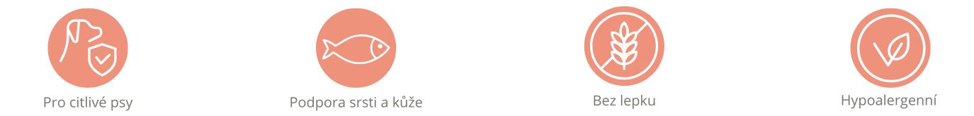 Superprémiové krmivo bez lepku pro dospělé psy s citlivým zažíváním. Obsahuje 20 % sušeného lososového proteinu a 20 % rýže, což zajišťuje vysokou stravitelnost a podporu zdravé kůže a srsti díky komplexu omega-3, -6 a -9 mastných kyselin. Krmivo neobsahuje pšenici ani konzervační látky, je obohaceno o probiotickou vlákninu (FOS) a je vhodné pro psy všech plemen.