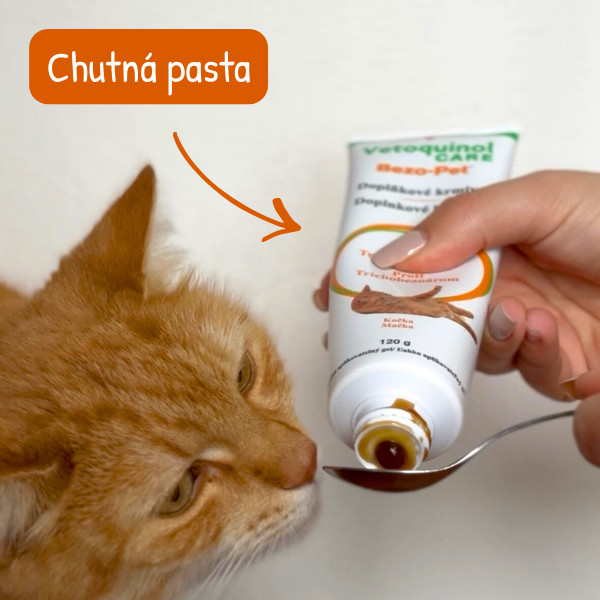 Vysoce účinná a chutná pasta pro kočky proti trichobezárům. Veterinární doplněk na odstranění bezoárů a bránící jejich dalšímu vzniku.