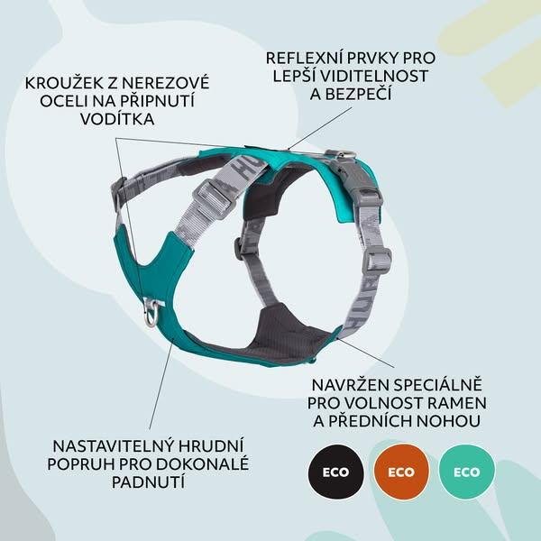 Postroj pro větší psy s nastavitelným, úzkým předním polstrováním.