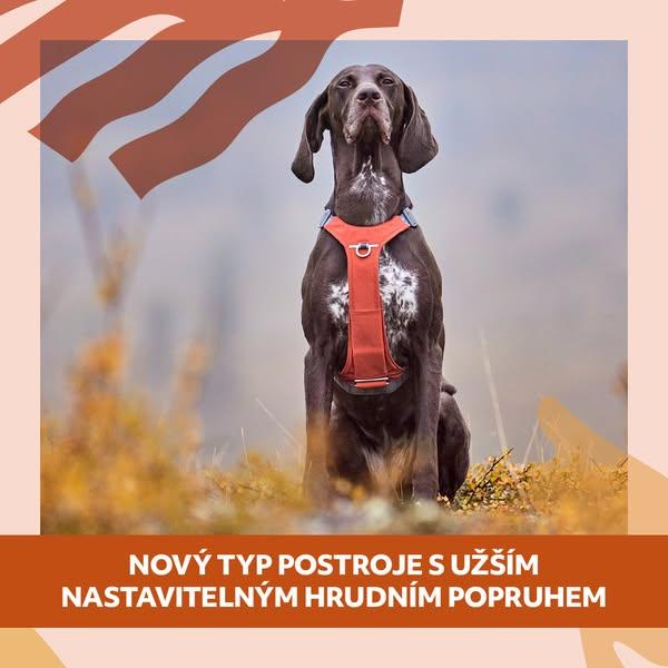 Postroj pro větší psy s nastavitelným, úzkým předním polstrováním.