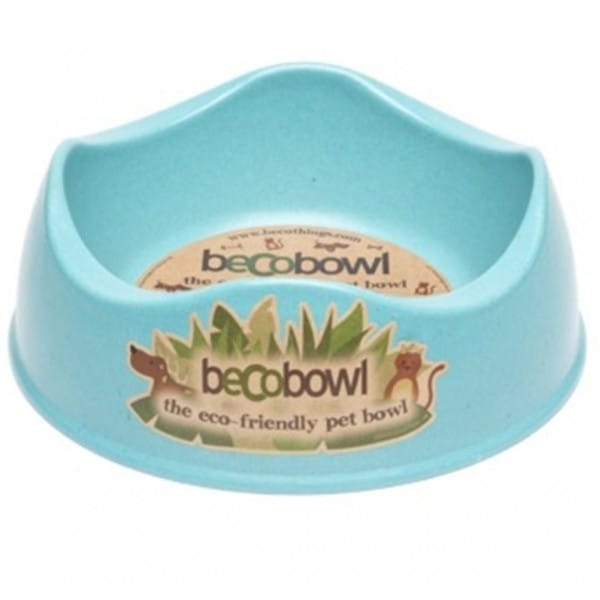 Modrá ekologická miska vyrobená z bambusu a rýžových slupek, která šetří životní prostředí. Vhodná pro střední plemena psů.