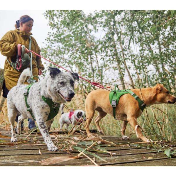 Ergonomický postroj pro velké psy. Univerzální postroj, který zvládne každodenní procházky i náročnější výlety. Díky pevnému, ale měkkému provedení se hodí pro každodenní nošení na běžné venčení, výlety i volný pohyb. Postroj dobře rozkládá tlak, takže je ideální i pro dlouhodobé nošení.