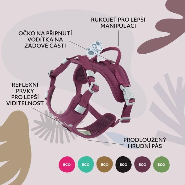 Ergonomický postroj pro psy, kteří milují pohyb. Univerzální postroj, který zvládne každodenní procházky i náročnější výlety. Díky pevnému, ale měkkému provedení se hodí pro každodenní nošení na běžné venčení, výlety i volný pohyb. Postroj dobře rozkládá tlak, takže je ideální i pro dlouhodobé nošení.