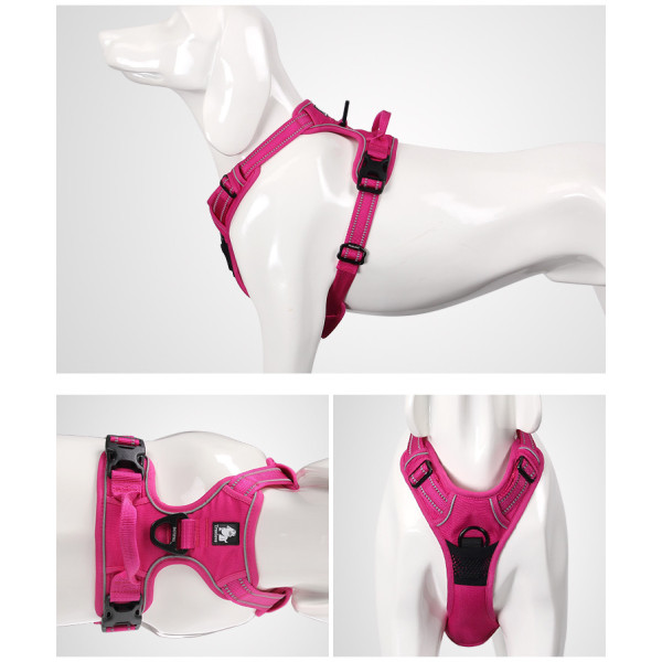 Pohodlný postroj pro psy. Ergonomický s reflexními prvky pro každodenní venčení. Velikost XL pro psy s nastavitelným obvodem krku 45-77cm a obvodem hrudníku 81-107cm.