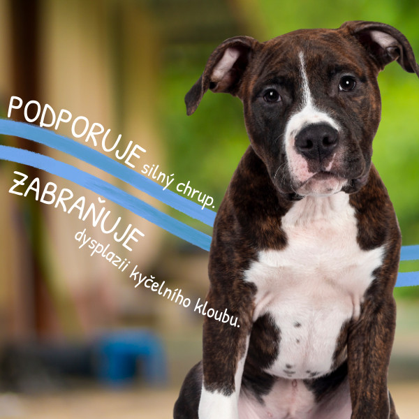 Kloubní výživa pro psy. Pro posílení pojivové tkáně, kloubů, chrupavek, kostí, zubů, vazů a šlach. Ke zlepšení stavu pohybového ústrojí a jako prevence vyšším stupňům dysplazie kyčelního kloubu, diskopatii apod.