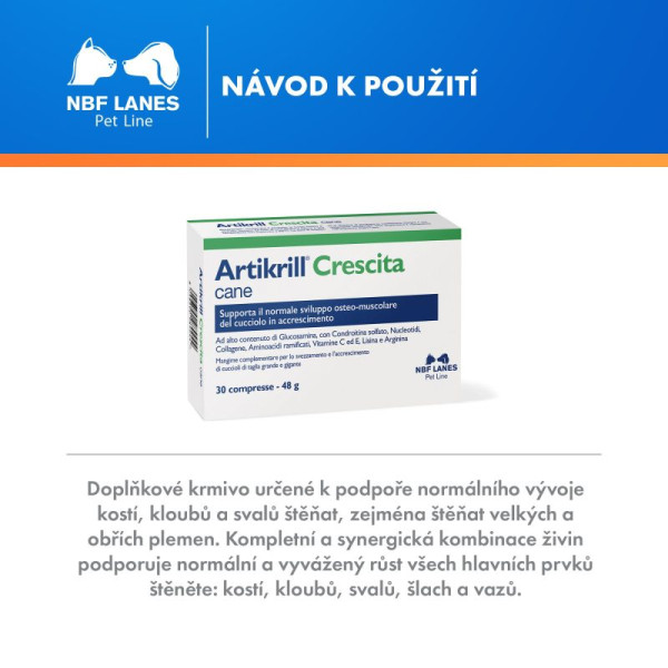 Doplňkové krmivo formulované pro podporu normálního osteo-artikulárního a svalového vývoje štěňat, zejména u velkých a obřích plemen. Komplexní a synergická kombinace nutričních složek podporuje vyvážený fyziologický růstový proces štěněte ve všech oblastech: kostech, kloubech, svalech, šlachách a vazech.