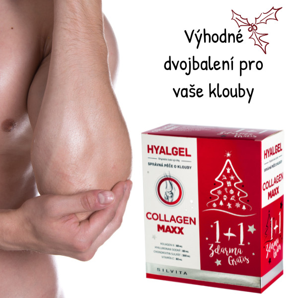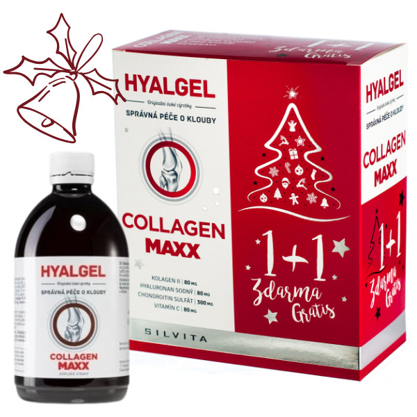 Vánoční balíček tekuté kloubní výživy. Chutný sirup na klouby s hyaluronanem sodným, kolagenem typu II, chondroitin sulfátem a vitamínem C. Pro lidi s vyšším zatížením kloubů, střední nebo vyšší věk, sportovce, osoby po úrazech či s nadváhou.