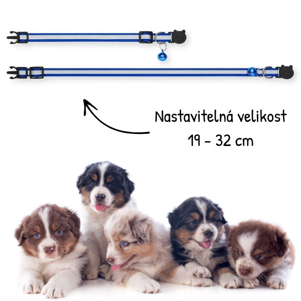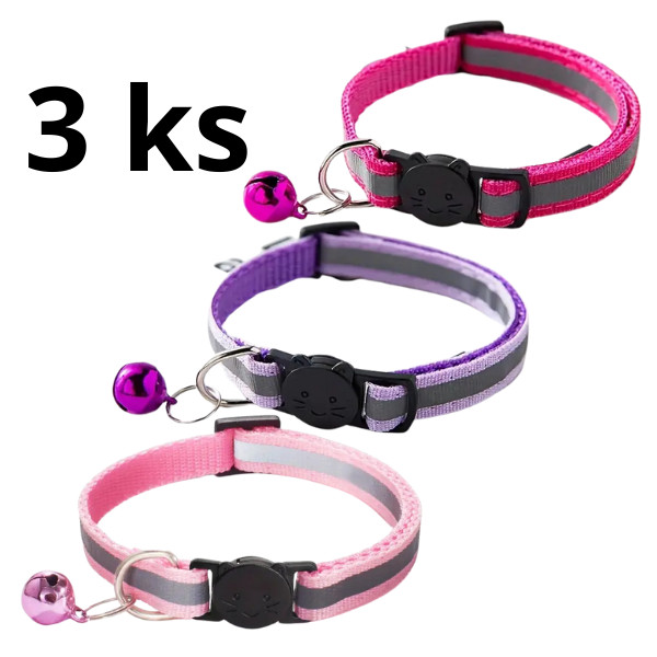 Sada 3 kusů rozlišovacích obojků pro štěňata nebo koťata. Obojky mají reflexní proužek a poutko na připnutí vodítka. Mix 3 "holčičích" barev: světle růžová, tmavě růžová a fialková. Nastavitelná velikost 19-32 cm.