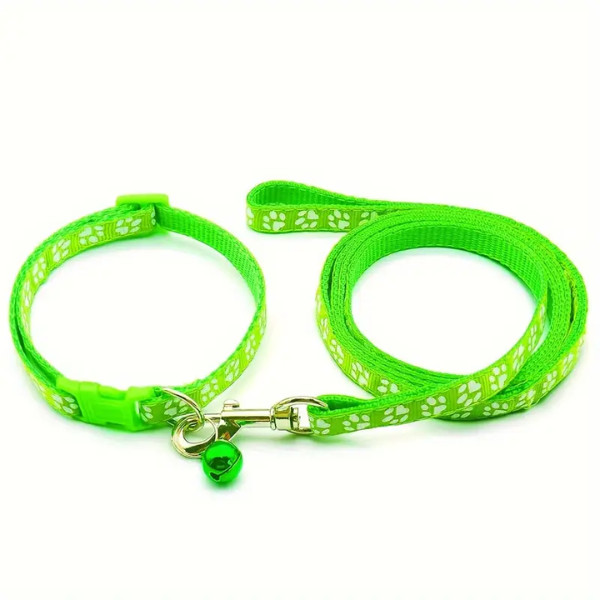 Sada obojek a vodítko pro štěně světle zelená s motivem tlapek. Praktická sada pro štěně pro první procházky i výcvik. Nastavitelný obojek 19–32 cm se šířkou 1 cm padne na každé malé štěňátko a roste spolu s ním. Pevné vodítko s délkou 120 cm zajistí kontrolu a bezpečí. Odolný a snadno omyvatelný materiál pro dlouhou životnost.