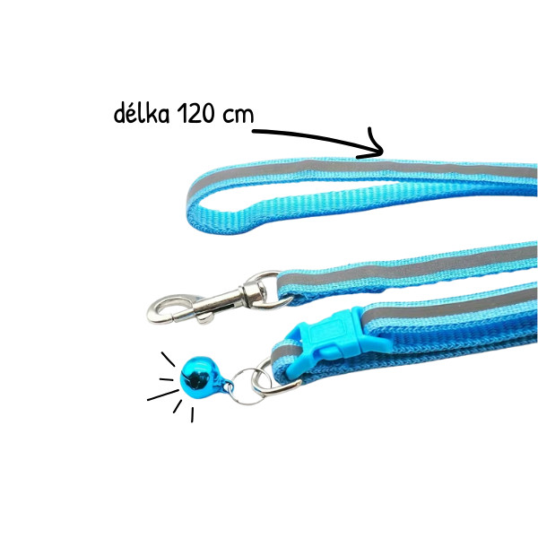 Sada obojek a vodtíko pro štěně reflexní. Praktická sada pro štěně pro první procházky i výcvik. Nastavitelný obojek 19–32 cm se šířkou 1 cm padne na každé malé štěňátko a roste spolu s ním. Pevné vodítko s délkou 120 cm zajistí kontrolu a bezpečí. Odolný a snadno omyvatelný materiál s reflexním prvkem pro lepší viditelnost za šera.