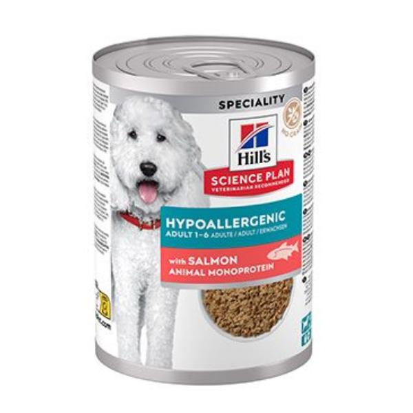 Hill's SCIENCE PLAN Hypoallergenic krmivo s lososem pro dospělé psy středně velkých plemen používá jemnou recepturu, která zahrnuje omezené zdroje nových vysoce kvalitních bílkovin, žádné obiloviny a je šitá na míru potřebám psů trpících přecitlivělostí na krmivo.