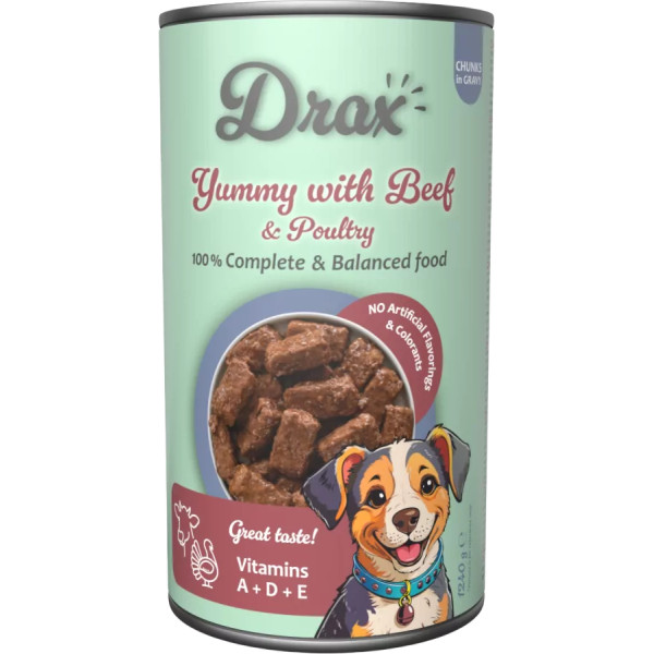 • Konzerva Drax Adult Dog s hovězím a drůbežím 1240g