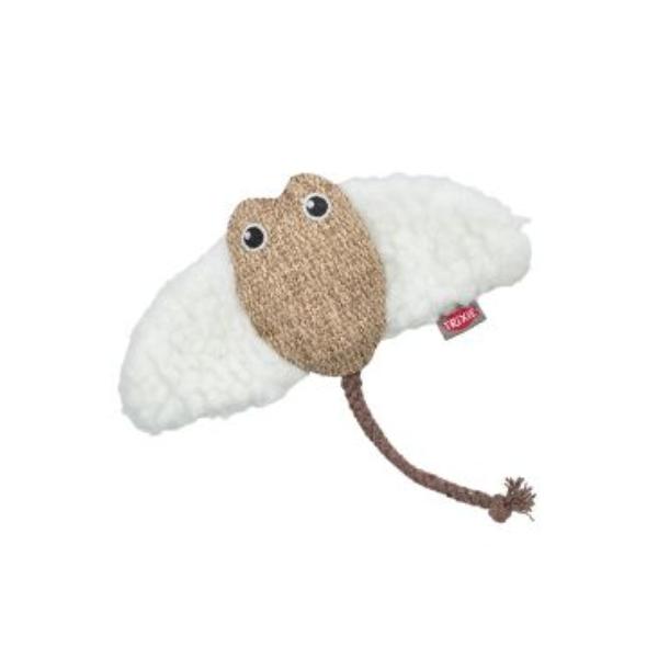 Hračka pro kočky, rejnok s plyšovými ploutvemi a provázkovým ocáskem.