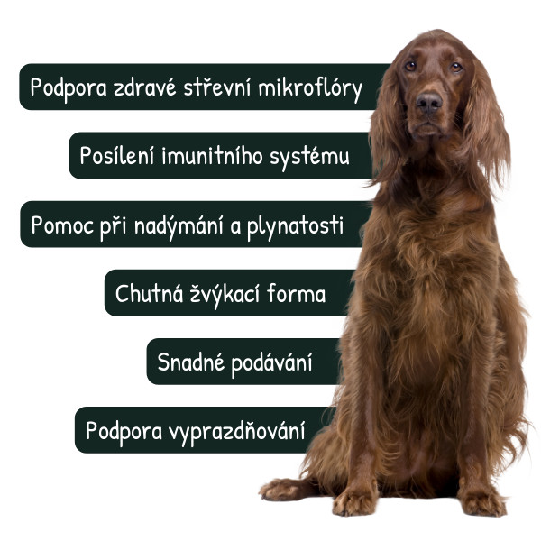 Probiotika nikdy nechutnala lépe. Měkké kachní kostičky s probiotiky a prebiotiky pro zdravá střeva, omezení průjmů i nadýmání. 1 měkký kousek obsahuje 1 miliardu CFU! Veterinární doplněk stravy. Díky chutné formě je ideální pro každodenní a dlouhodobé podávání. Originální receptura z USA.