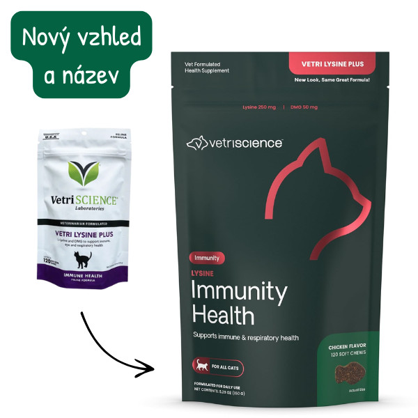 Veterinární doplněk na kočičí rýmu pro dospělé kočky i koťata. Vetri Lysine Plus jsou chutné kousky s příchutí kuřecích jater. Podávají se přímo z ruky nebo rozmačkané do krmiva. Pro masivní podporu fungování imunitního systému při respiračních obtížích (rýma, kašel) nebo jako prevence kočičí rýmy, kočičího kašle a dalších infekcí.