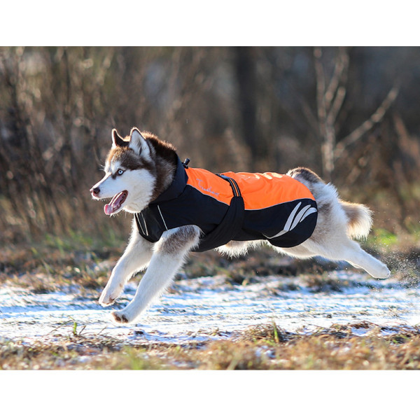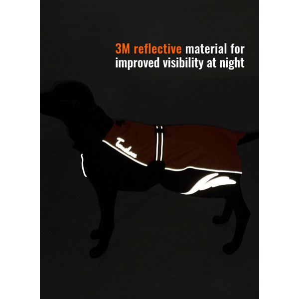 Voděodolný zateplený obleček pro psy. Ergonomický s reflexními prvky pro každodenní nošení v nepříznivém počasí. Velikost M pro psy s délkou zad 50 cm. Vodní sloupec 10.0000 mm pro maximální ochranu i před vydatným deštěm. Vhodný pro teploty pod 15°C až do mrazu -5°C.