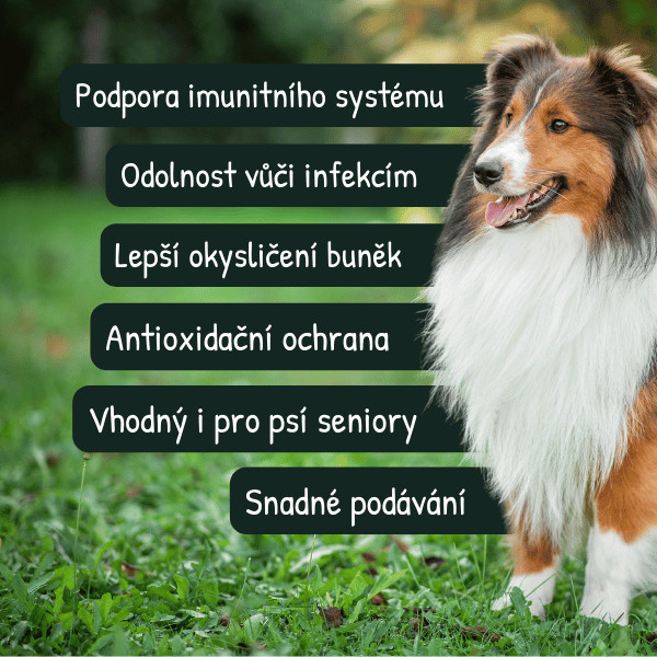 Antioxidační podpora imunitního systému pro psy s 22 účinnými látkami včetně vitamínů, minerálních látek, bioflavonoidů a aminokyselin. Veterinární doplněk stravy. Díky chutné formě je navíc ideální pro každodenní a dlouhodobé podávání. Originální receptura z USA.