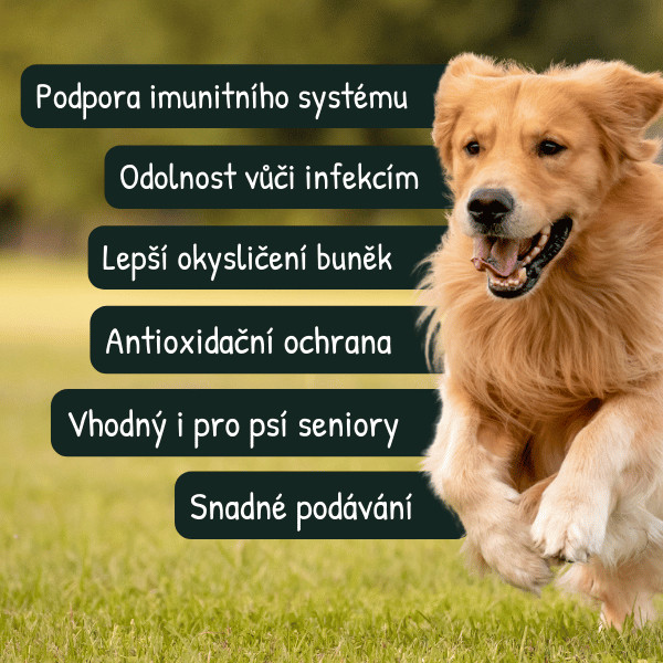Antioxidační podpora imunitního systému pro psy s 22 účinnými látkami včetně vitamínů, minerálních látek, bioflavonoidů a aminokyselin. Veterinární doplněk stravy. Díky chutné formě je navíc ideální pro každodenní a dlouhodobé podávání. Originální receptura z USA.